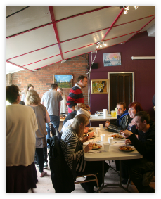 Once a month we bring food to the church centre building and eat it with each other.